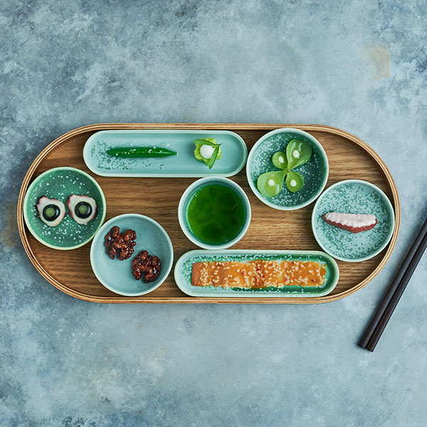 Das gewohnte Aromen-Spiel von Süße, Schärfe und Säure, jedoch frei von tierischen Produkten und ohne auf Genuss zu verzichten. Typische Tim-Raue-Kreationen werden hier in ihrer veganen Adaption präsentiert.